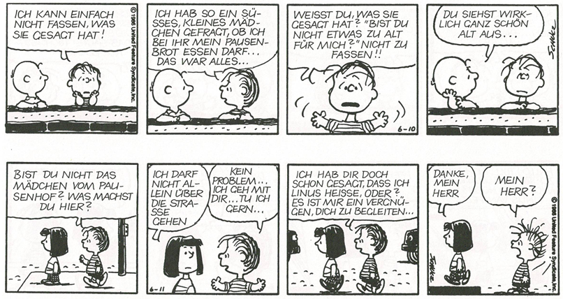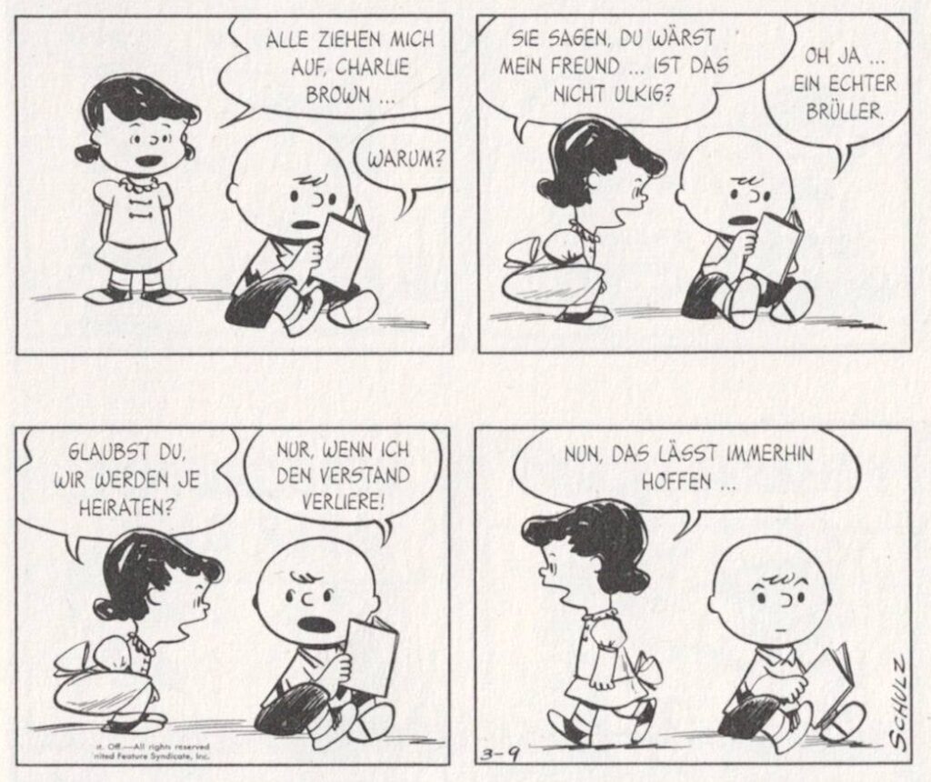 Auch Charles M. Schulz hat klein angefangen. Mit der Beziehung von Lucy und Charlie Brown zum Beispiel.